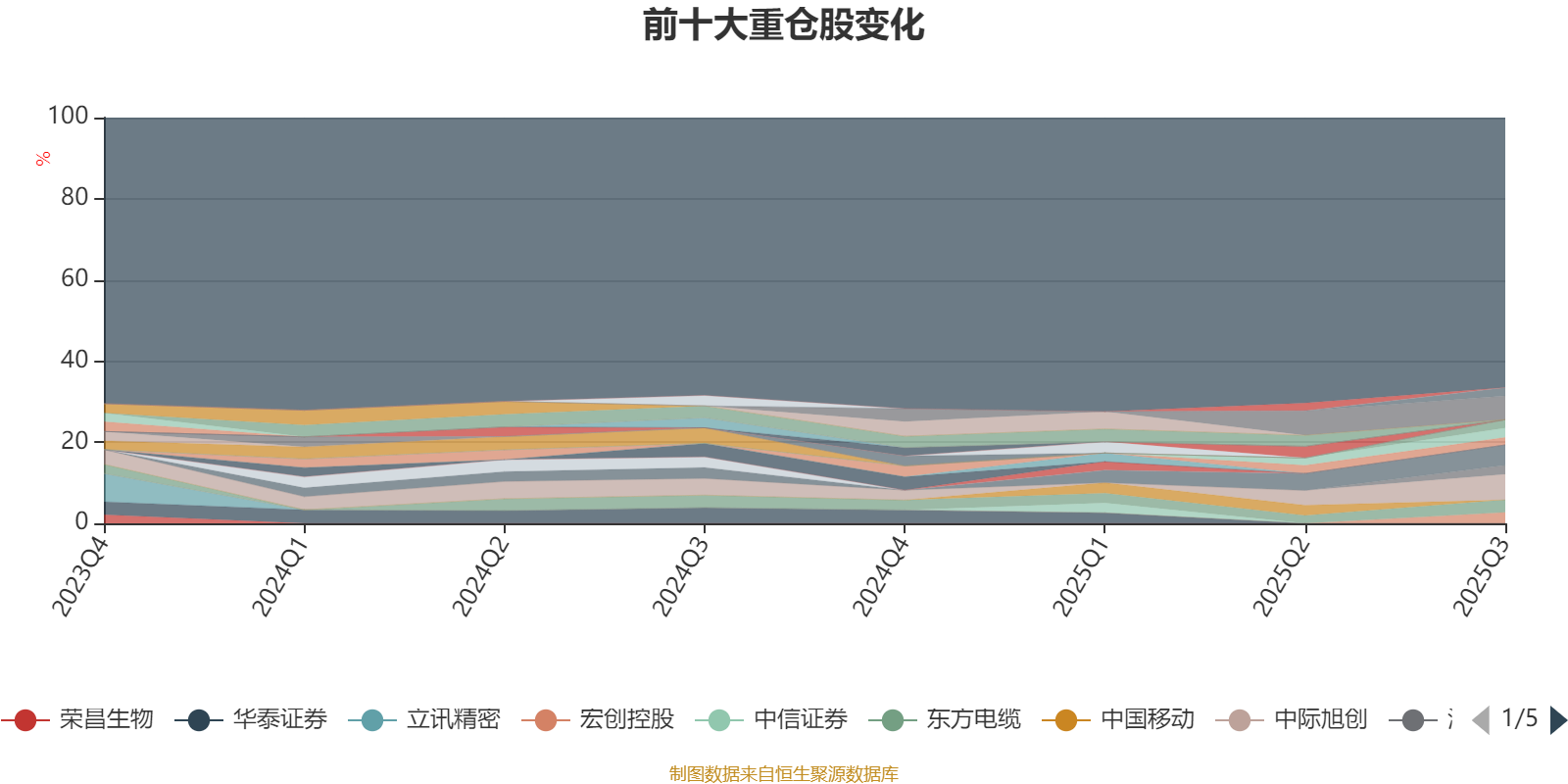 截至2025年三季度末,基金十大重仓股分别是中际旭创、新易盛、紫金矿业、东方电缆、宏创控股、新华保险、洛阳钼业、徐工机械、华新水泥、招商银行。