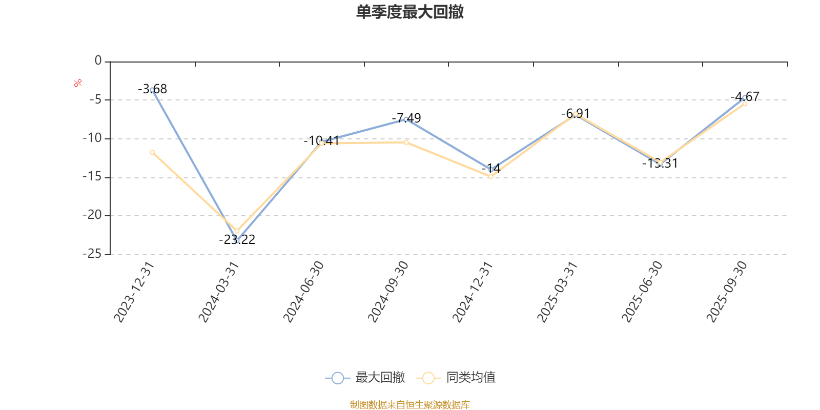 截至10月27日,基金成立以来最大回撤为24.96%。单季度最大回撤出现在2024年一季度,为23.22%。