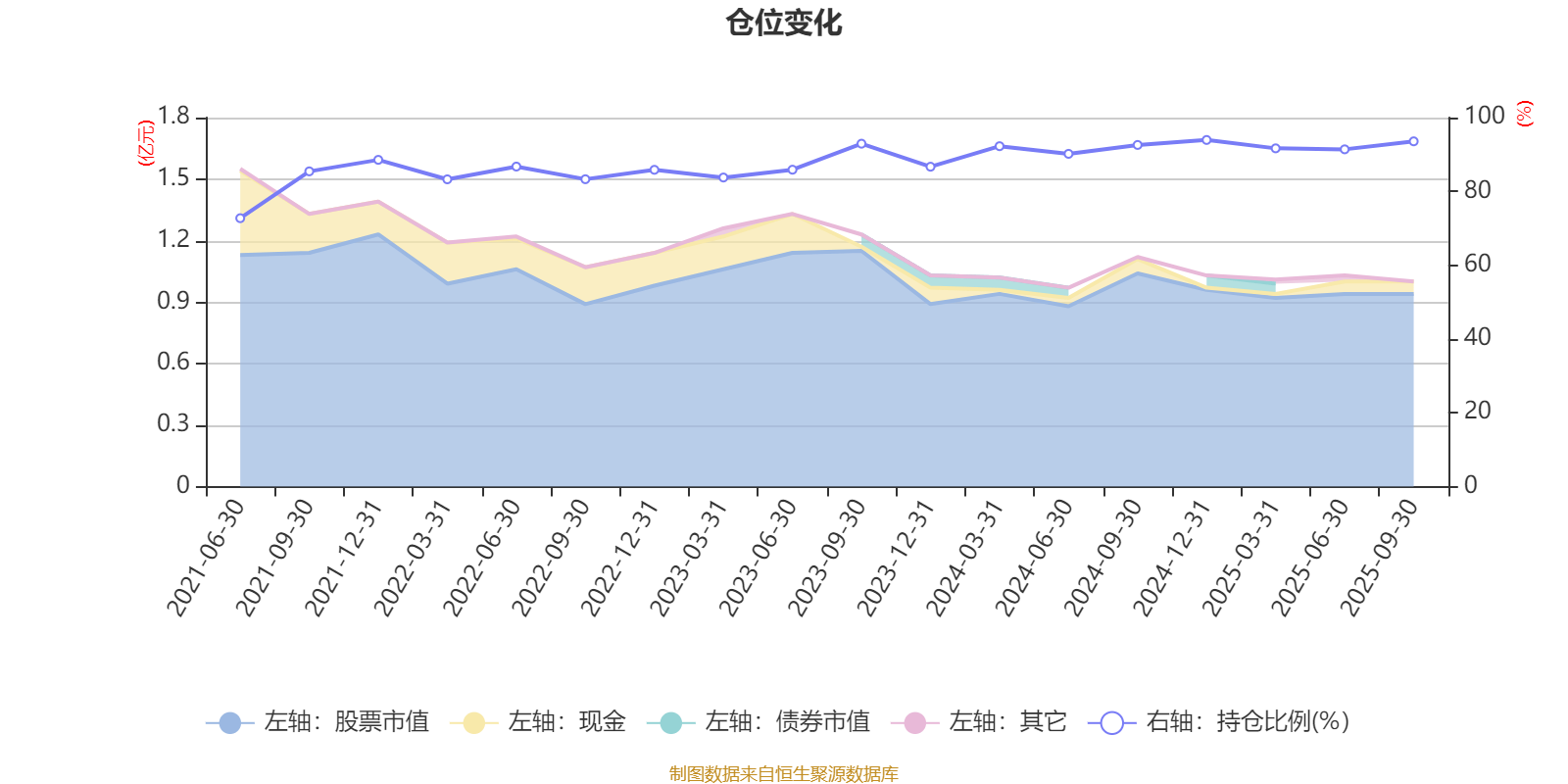 据定期报告数据统计,近三年平均股票仓位为90.06%,同类平均为88.23%。2024年末基金达到93.94%的最高仓位,2021年上半年末最低,为72.74%。