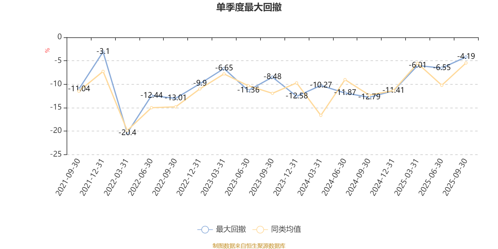 截至10月27日,基金近三年最大回撤为30.5%,同类可比基金排名29/87。单季度最大回撤出现在2022年一季度,为20.4%。