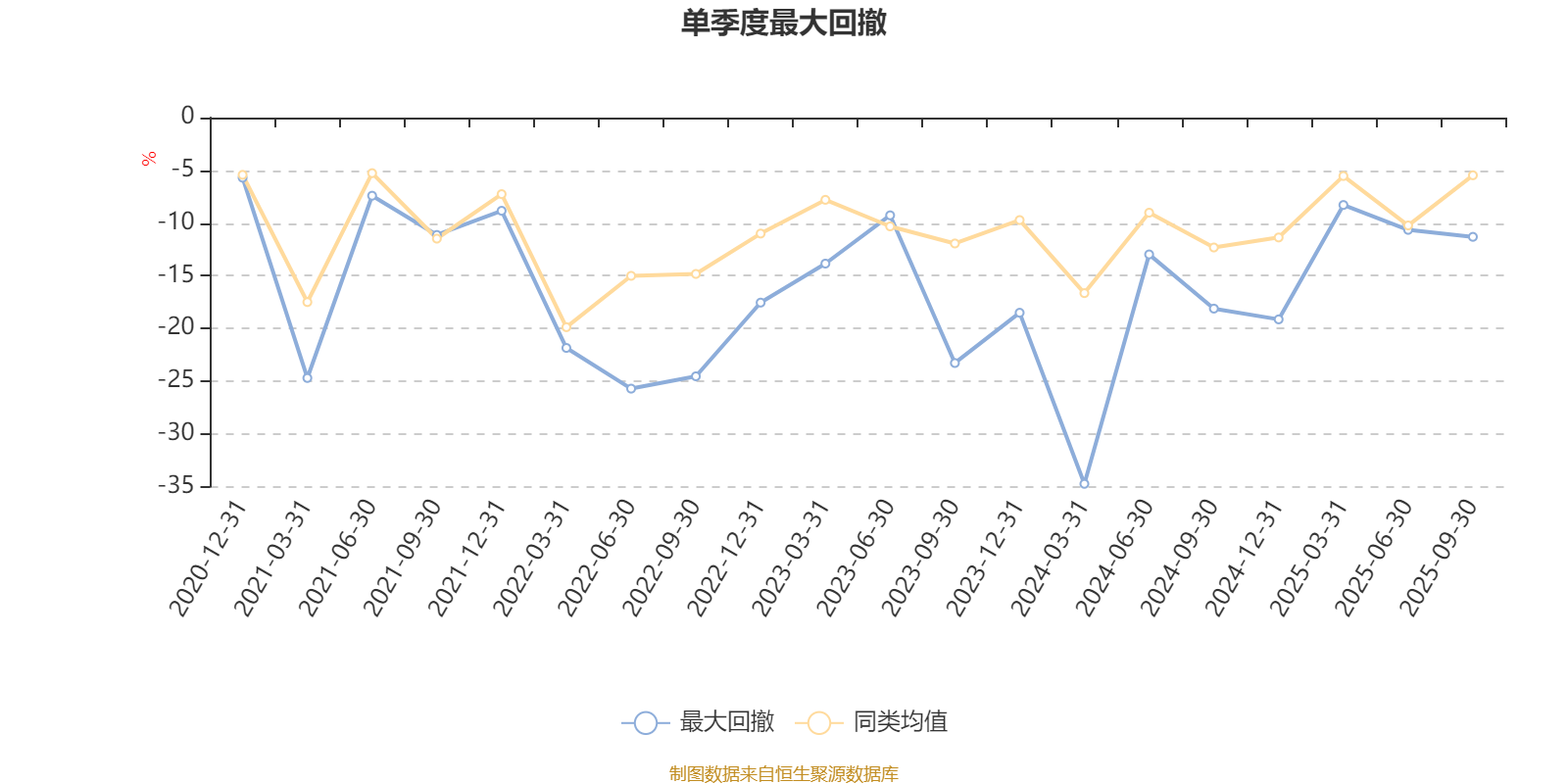 截至10月27日,基金近三年最大回撤为62.72%,同类可比基金排名86/87。单季度最大回撤出现在2024年一季度,为34.74%。