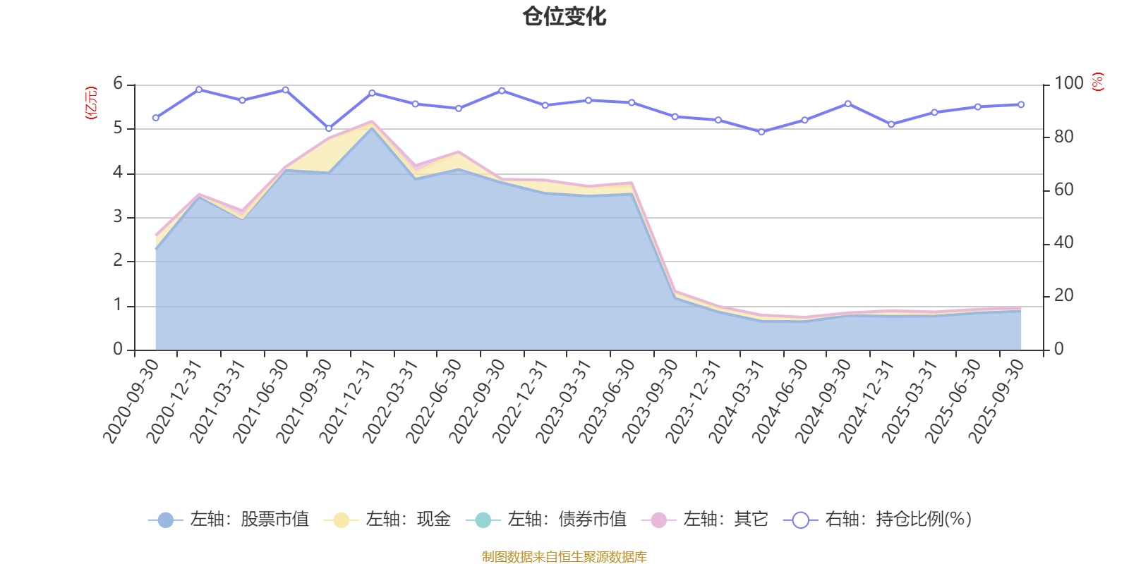 据定期报告数据统计,近三年平均股票仓位为89.53%,同类平均为88.23%。2020年末基金达到98.12%的最高仓位,2024年一季度末最低,为82.17%。