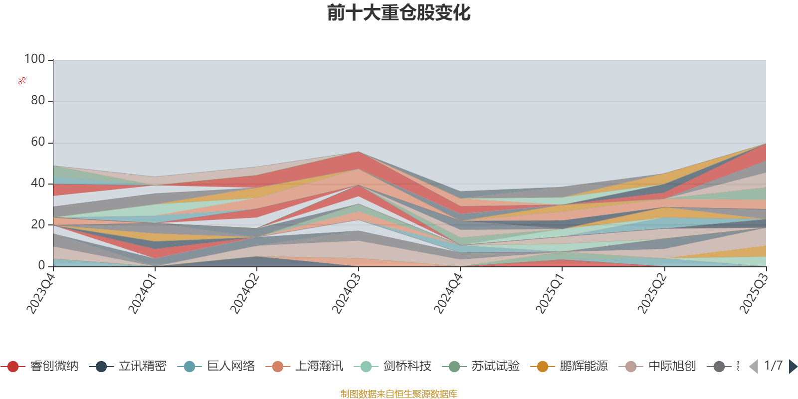 截至2025年三季度末,基金十大重仓股分别是中际旭创、新易盛、工业富联、亿纬锂能、天孚通信、鹏辉能源、源杰科技、剑桥科技、胜宏科技、科华数据。