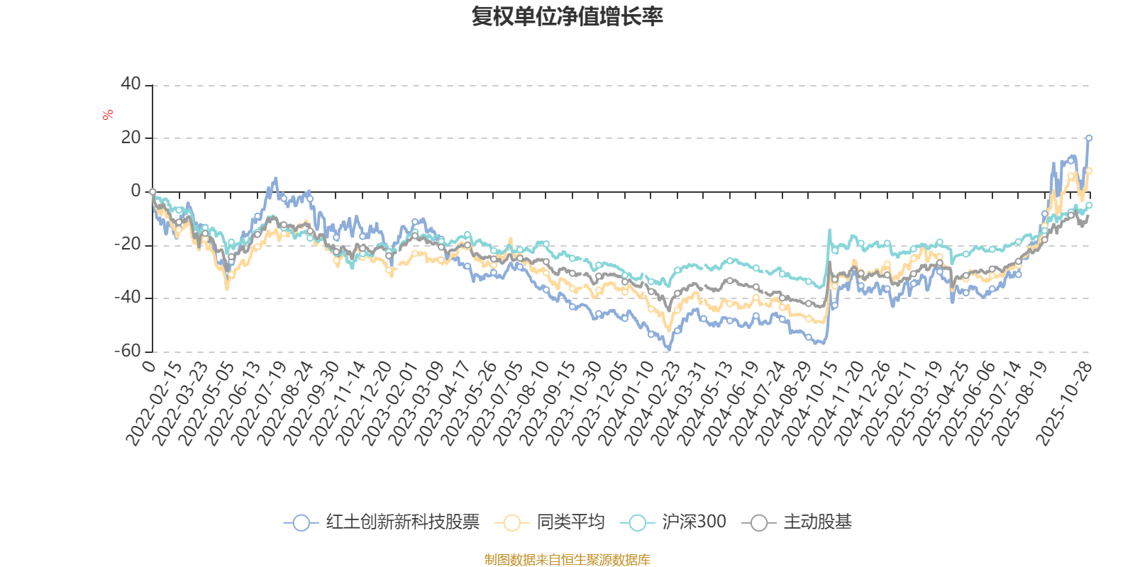 截至10月28日,红土创新新科技股票近三个月复权单位净值增长率为54.74%,位于同类可比基金13/63;近半年复权单位净值增长率为93.13%,位于同类可比基金10/63;近一年复权单位净值增长率为84.95%,位于同类可比基金9/61;近三年复权单位净值增长率为42.60%,位于同类可比基金30/51。