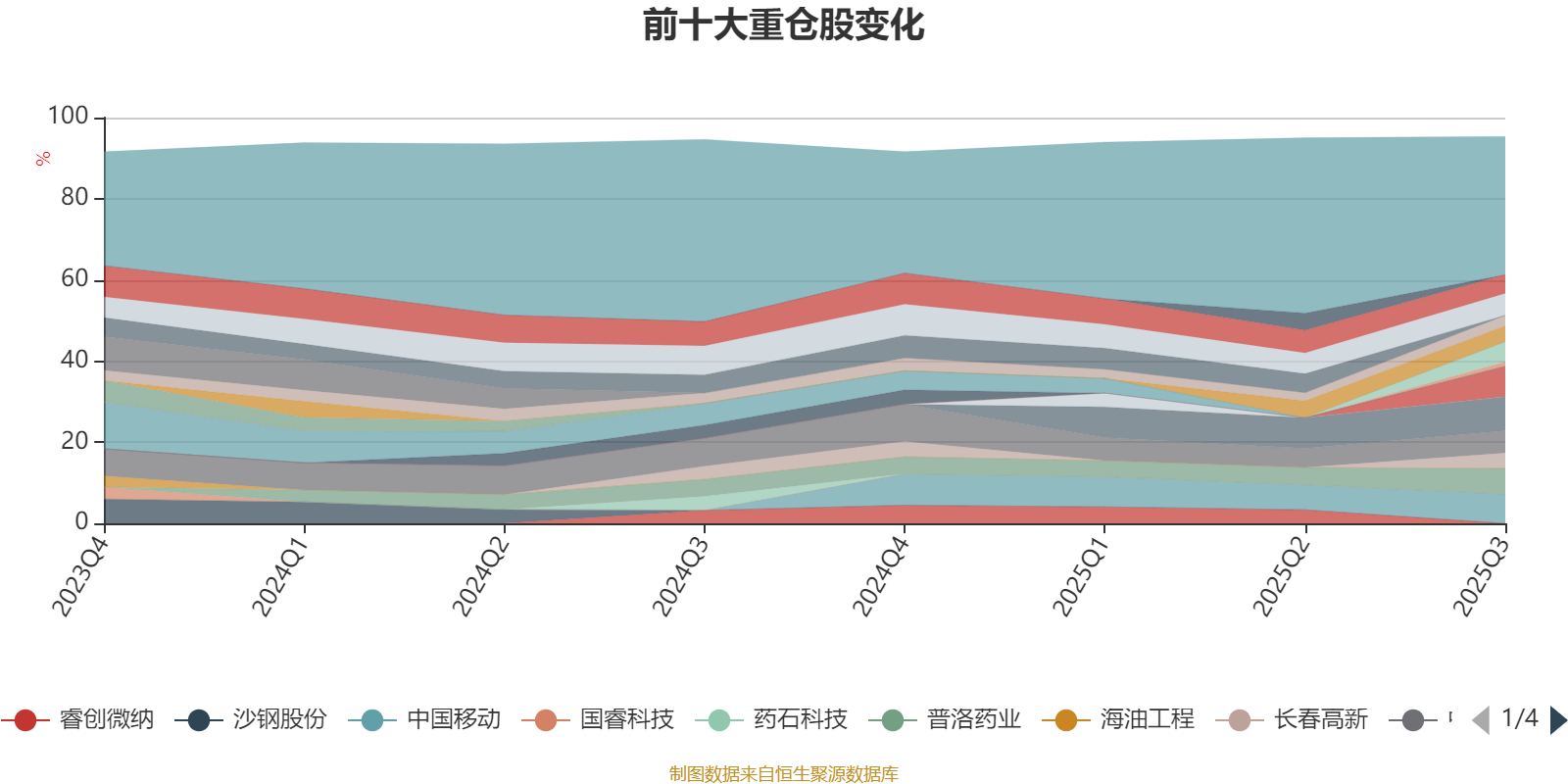 该基金持股集中度较高,且持股标的较为稳定。截至2025年三季度末,基金重仓股分别是康弘药业、中国海油、中国移动、普洛药业、中兴通讯、广深铁路、久立特材、华勤技术、圆通速递、长春高新、广深铁路股份、中国海洋石油。