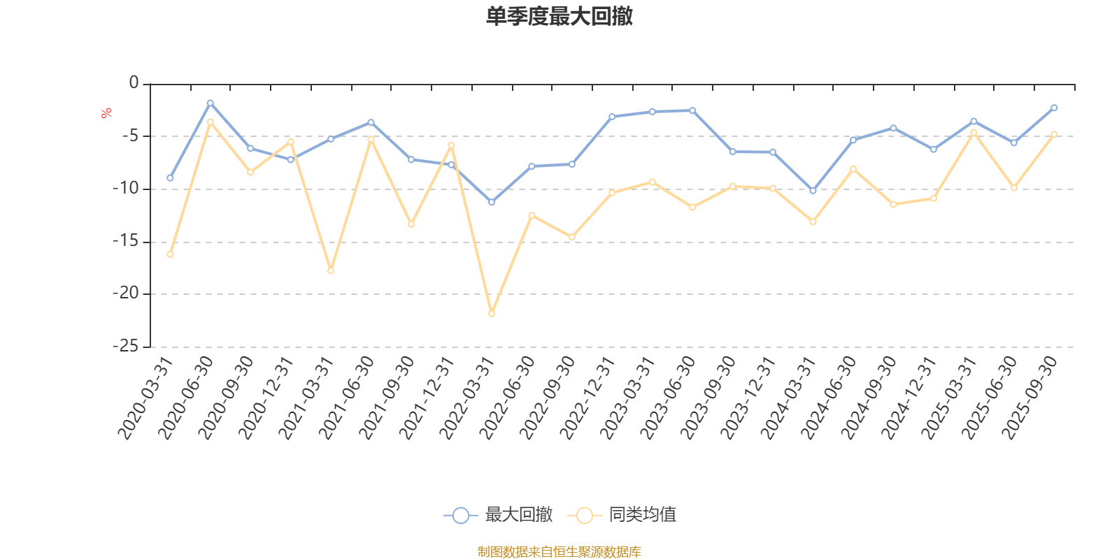 截至10月27日,基金近三年最大回撤为18.05%,同类可比基金排名0/20。单季度最大回撤出现在2022年一季度,为11.24%。