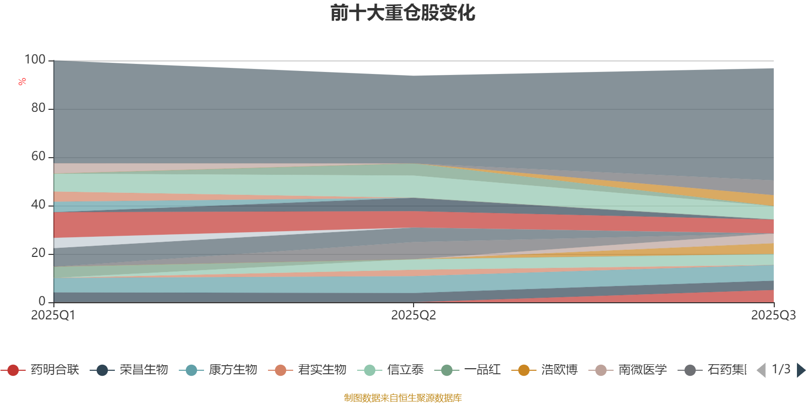 该基金持股集中度较高。截至2025年三季度末,基金十大重仓股分别是康方生物、药明生物、三生制药、信达生物、药明合联、恒瑞医药、信立泰、浩欧博、南微医学、荣昌生物。