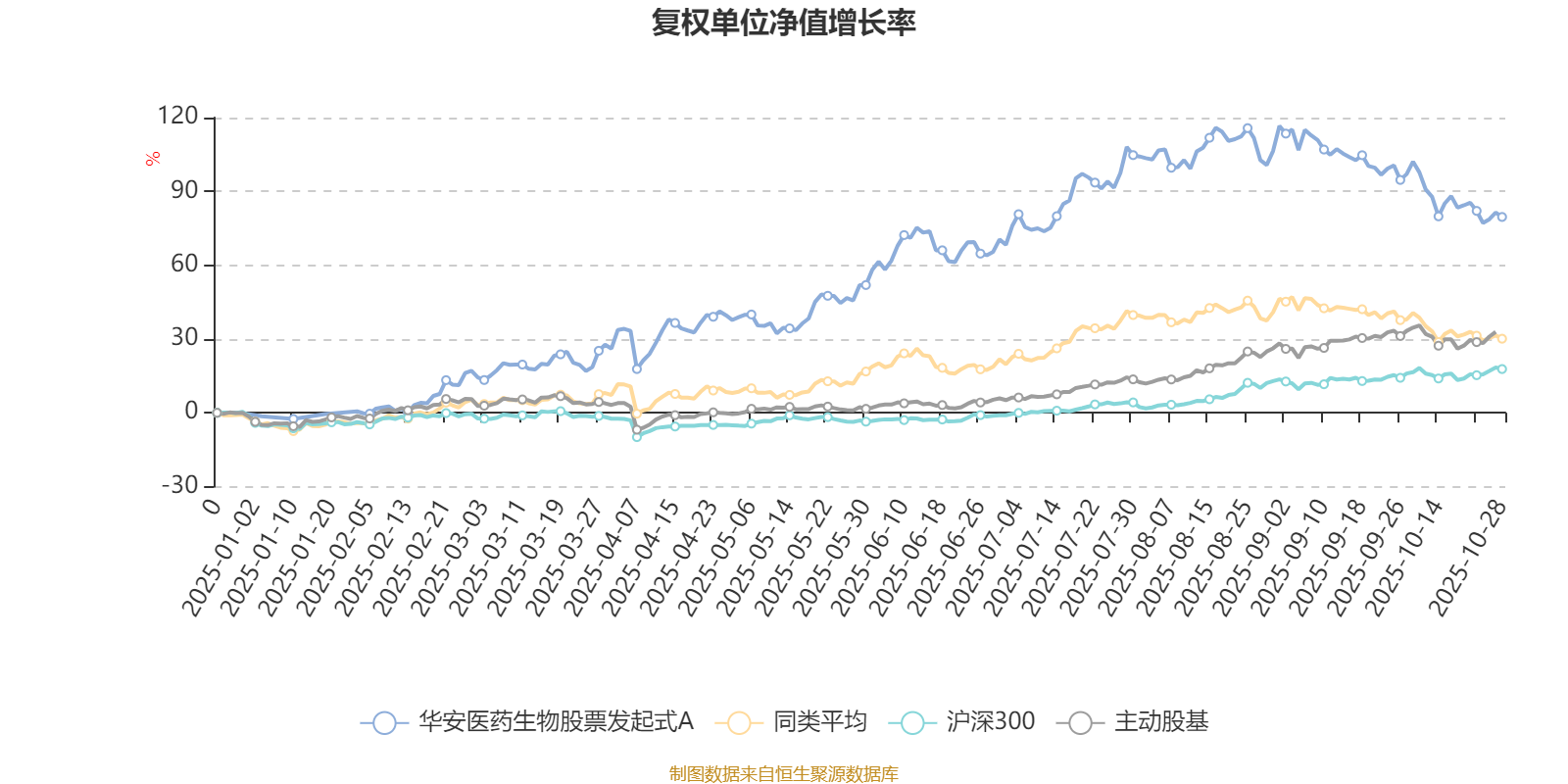 截至10月28日,华安医药生物股票发起式A近三个月复权单位净值增长率为-9.06%,位于同类可比基金44/57;近半年复权单位净值增长率为30.42%,位于同类可比基金9/57。
