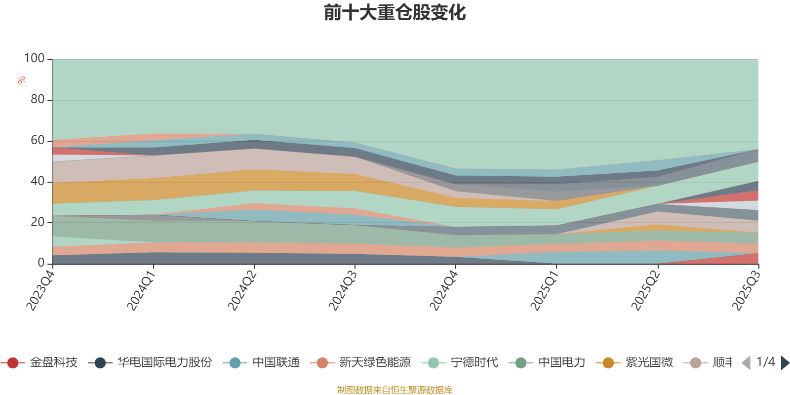 截至2025年三季度末,基金十大重仓股分别是法拉电子、盛弘股份、顺丰控股、中国电力、信义光能、金盘科技、龙源电力、新天绿色能源、南都电源、密尔克卫。