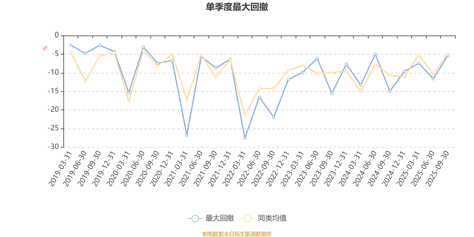 截至10月27日,基金近三年最大回撤为31.72%,同类可比基金排名29/56。单季度最大回撤出现在2022年一季度,为27.64%。