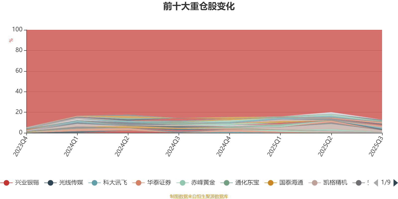 截至2025年三季度末,基金十大重仓股分别是胜宏科技、广发证券、国元证券、新和成、大华股份、京东方A、润丰股份、中国中铁、金雷股份、三美股份。