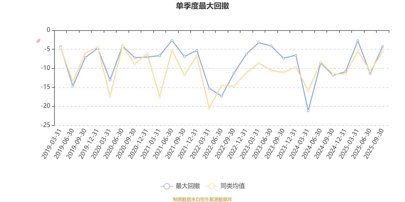 截至10月27日,基金近三年最大回撤为25.96%,同类可比基金排名25/156。单季度最大回撤出现在2024年一季度,为21.15%。