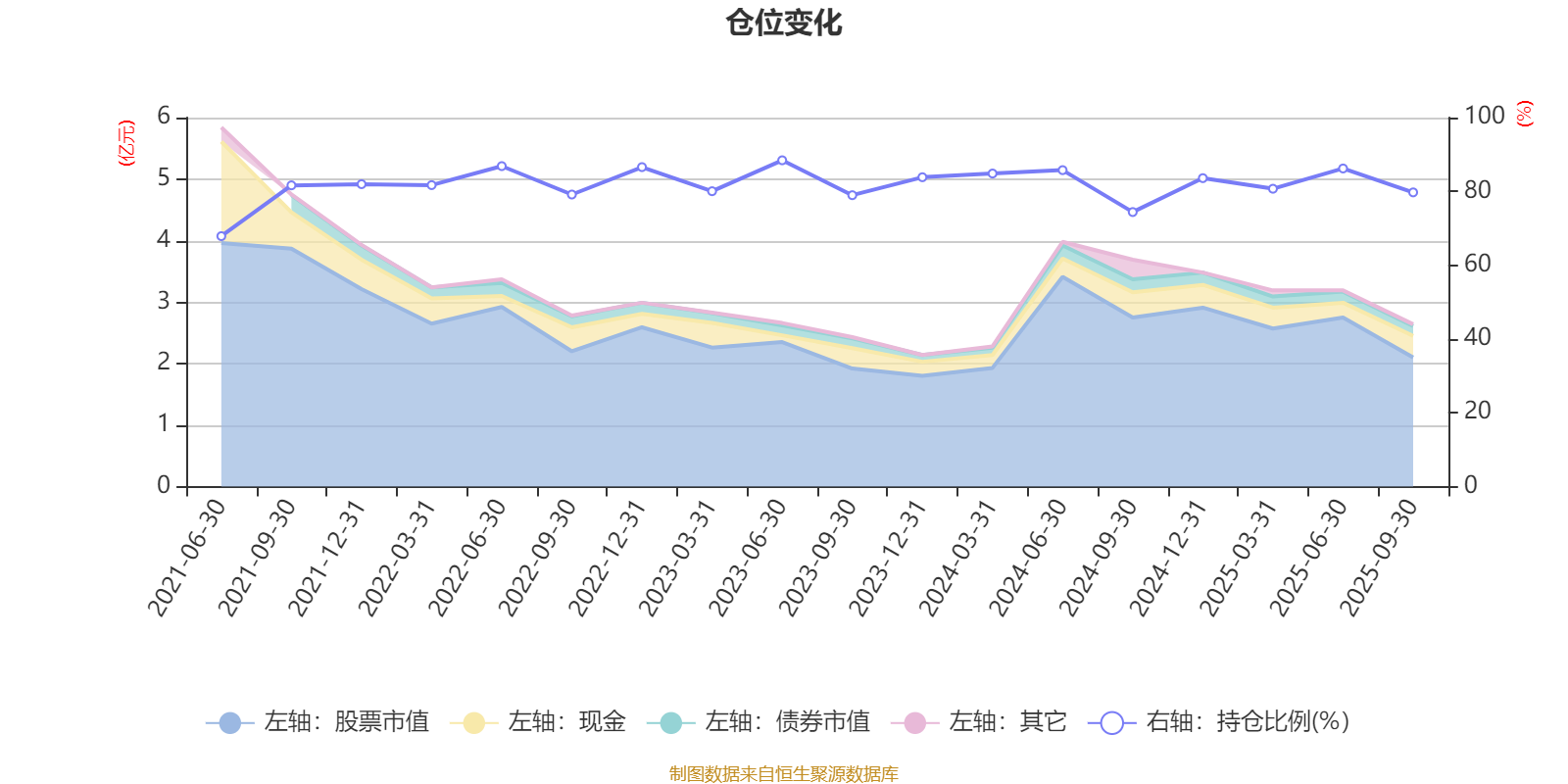 据定期报告数据统计,近三年平均股票仓位为82.76%,同类平均为88.27%。2023年上半年末基金达到88.43%的最高仓位,2021年上半年末最低,为67.87%。