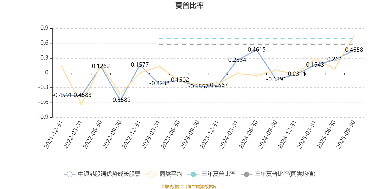 截至9月30日,基金近三年夏普比率为0.6946,位于同类可比基金58/156。