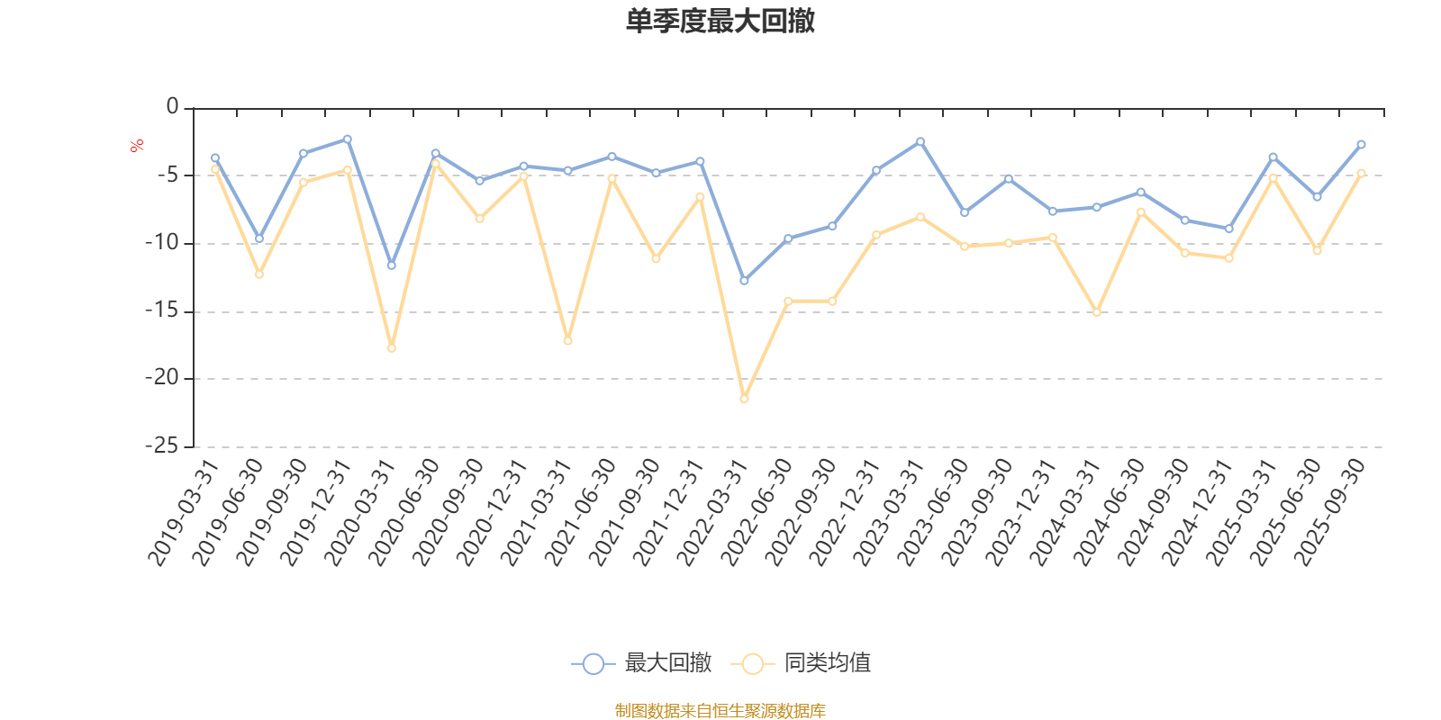 截至10月27日,基金近三年最大回撤为16.93%,同类可比基金排名3/56。单季度最大回撤出现在2022年一季度,为12.74%。