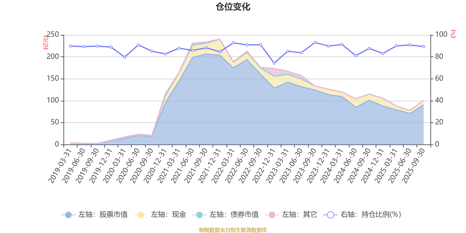 据定期报告数据统计,近三年平均股票仓位为86.65%,同类平均为87.59%。2023年三季度末基金达到93.12%的最高仓位,2022年末最低,为74.28%。