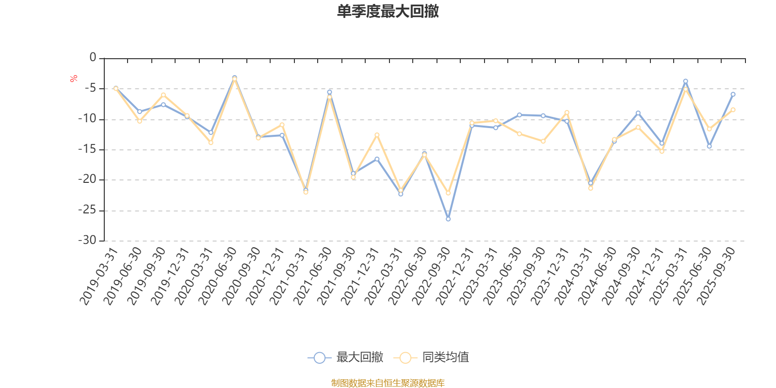 通过所选区间该基金净值增长率分位图,可以观察该基金与同类基金业绩比较情况。图为坐标原点到区间内某时点的净值增长率在同类基金中的分位数。