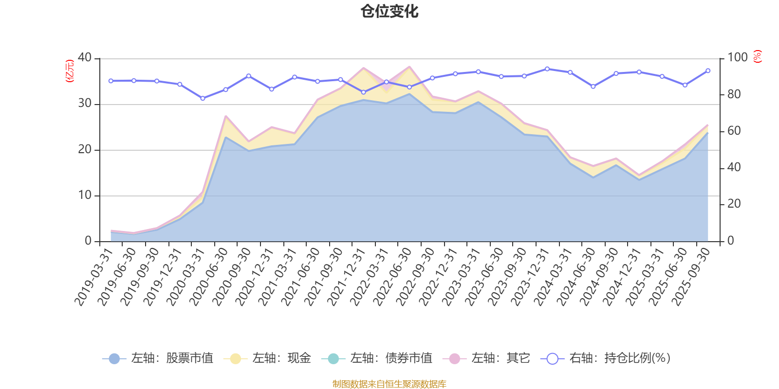 据定期报告数据统计,近三年平均股票仓位为90.76%,同类平均为88.38%。2023年末基金达到94.25%的最高仓位,2020年一季度末最低,为78.16%。