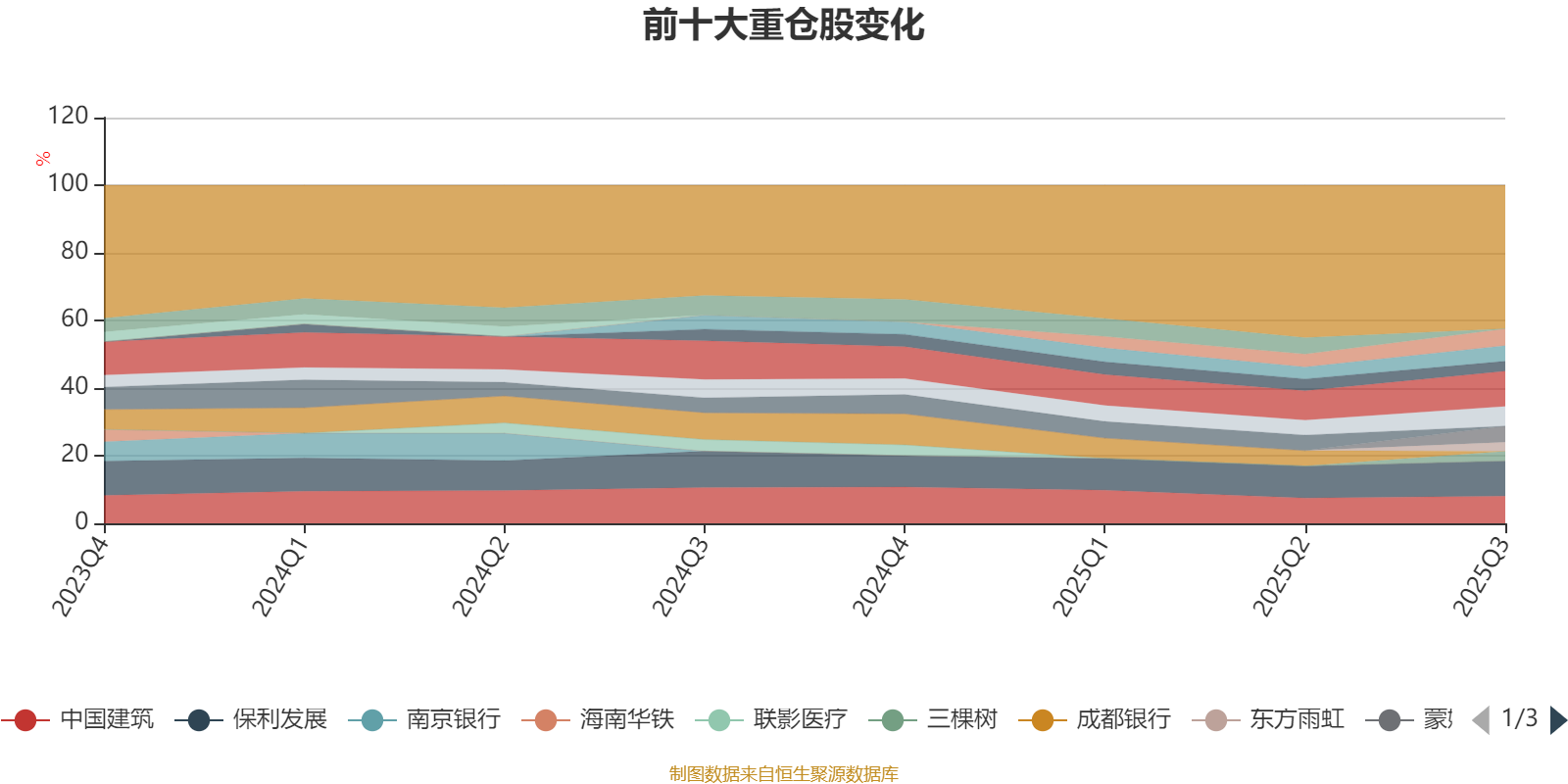 该基金持股集中度较高,且持股标的较为稳定。截至2025年三季度末,基金十大重仓股分别是保利发展、招商蛇口、中国建筑、华发股份、艾力斯、蒙娜丽莎、金地集团、索菲亚、三棵树、东方雨虹。