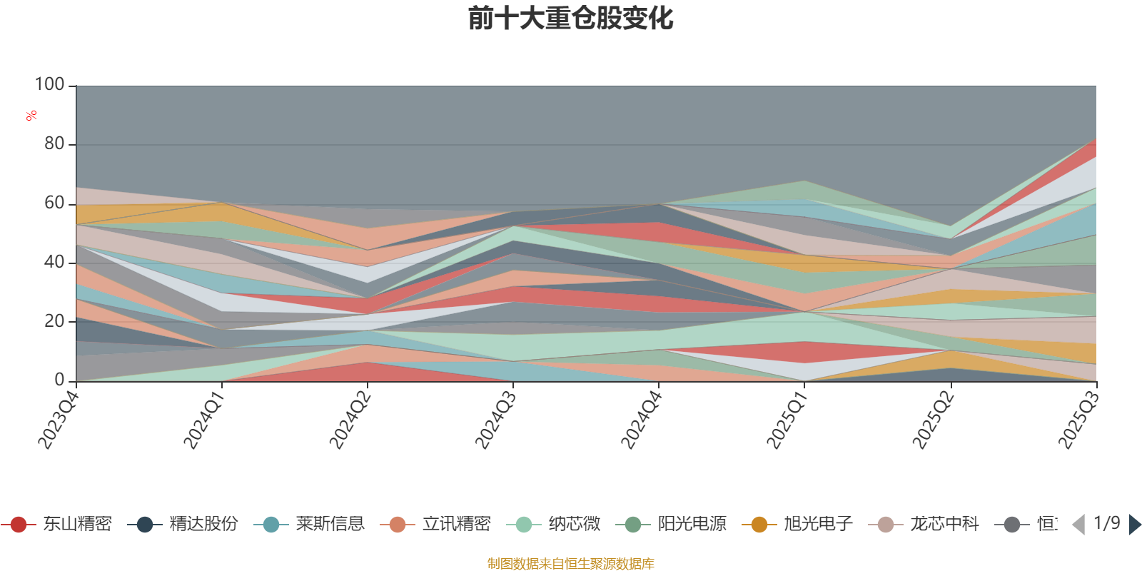 基金管理人在三季报中表示,报告期内,我们大幅增加了 AI 相关公司的持仓,核心是芯片、算力方向。我们看好中国公司在本轮科技浪潮中的竞争力。报告期内,我们减持了军工可控核聚变等方向的持仓,我们仍看好军工方向,但对于短期涨幅显著超越其基本面的股票,决定予以减仓。