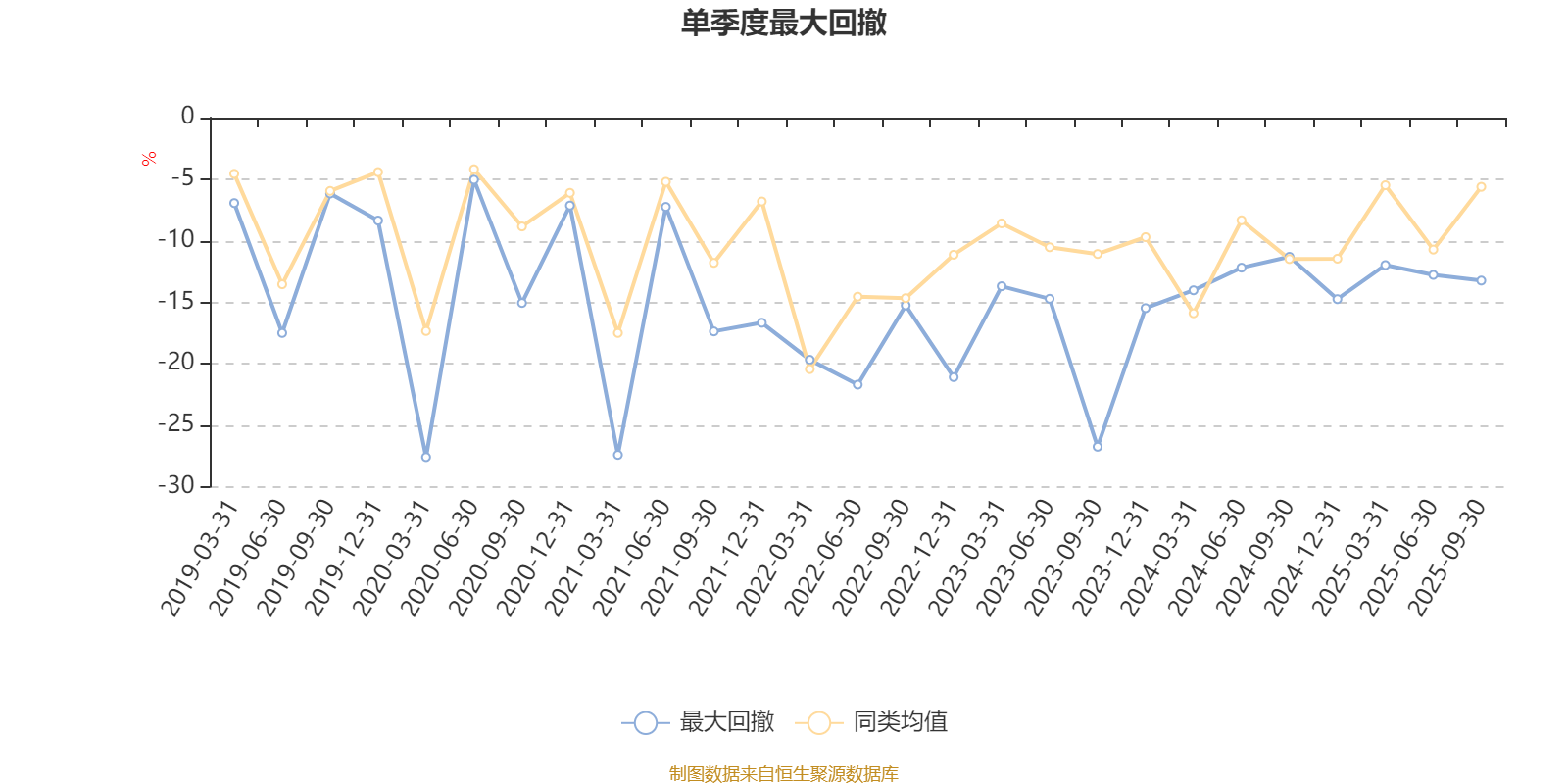 截至10月27日,基金近三年最大回撤为51.96%,同类可比基金排名150/156。单季度最大回撤出现在2020年一季度,为27.6%。