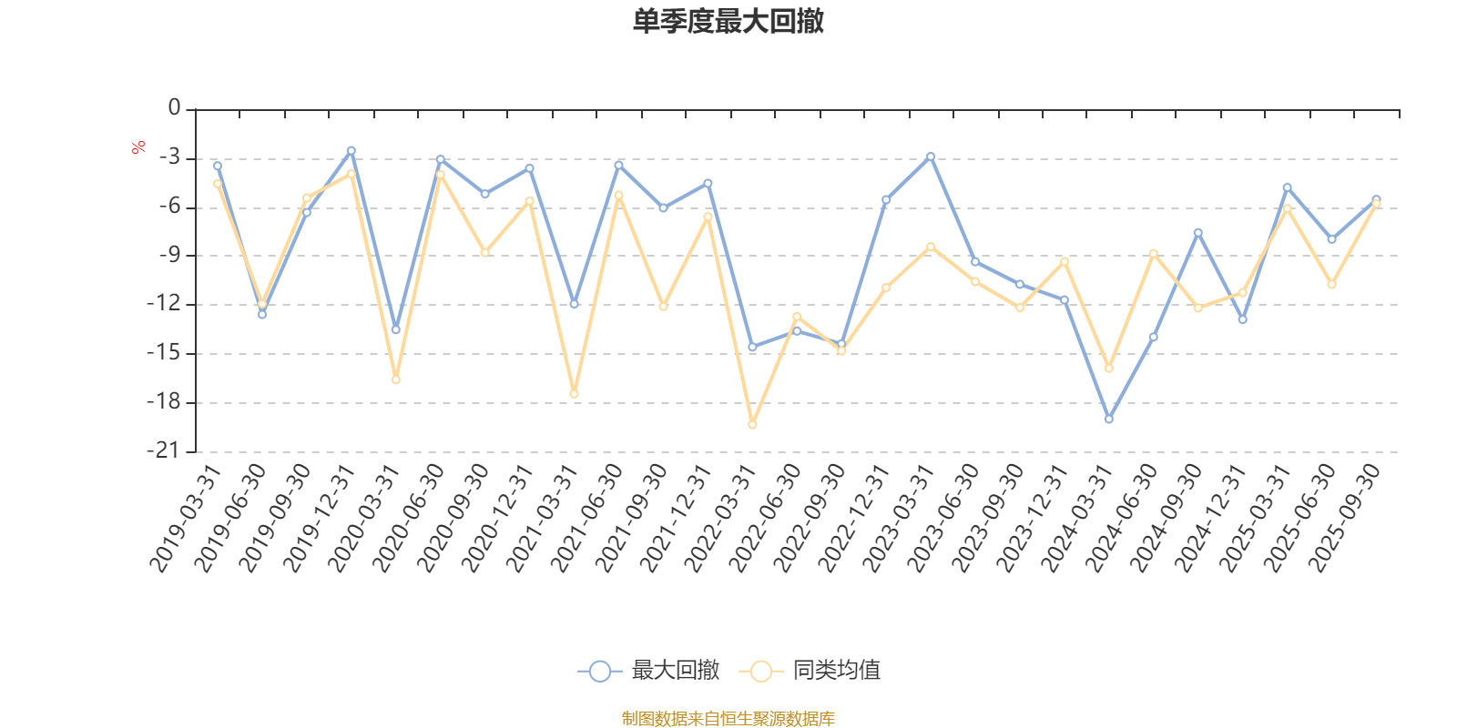 通过所选区间该基金净值增长率分位图,可以观察该基金与同类基金业绩比较情况。图为坐标原点到区间内某时点的净值增长率在同类基金中的分位数。