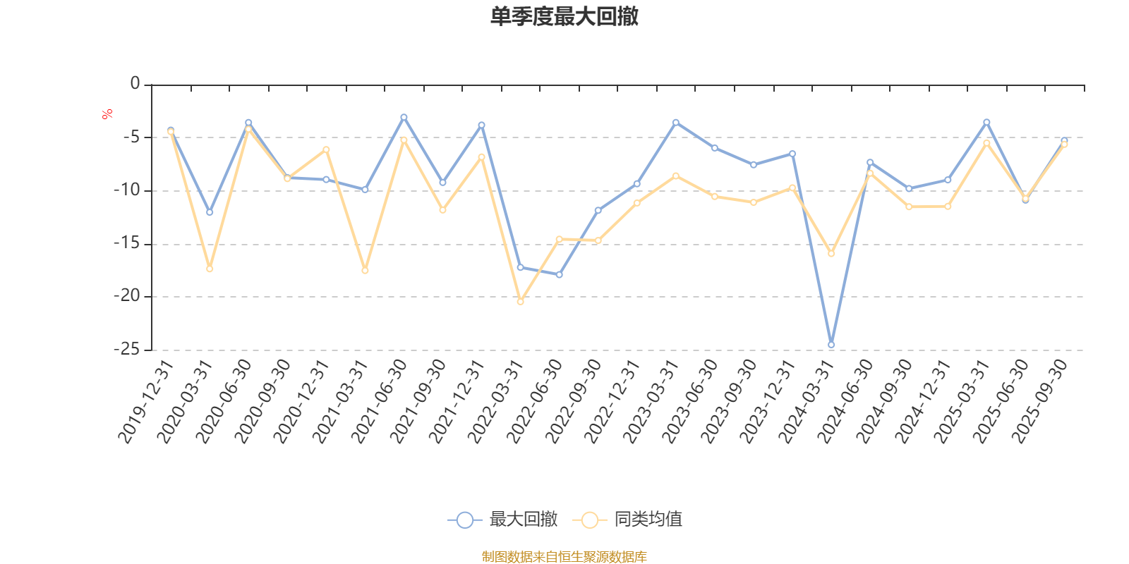 截至10月27日,基金近三年最大回撤为28.39%,同类可比基金排名41/156。单季度最大回撤出现在2024年一季度,为24.5%。