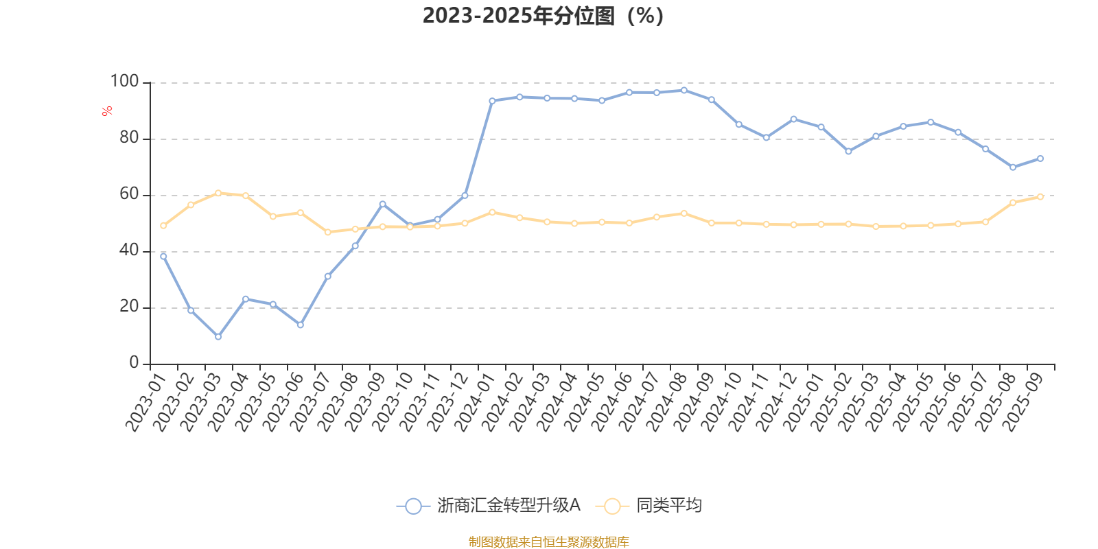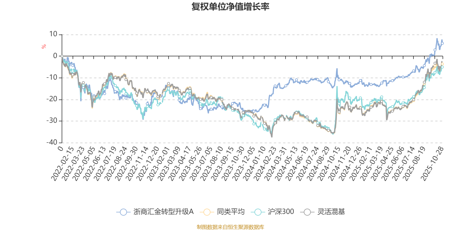 截至10月28日,浙商汇金转型升级A近三个月复权单位净值增长率为12.60%,位于同类可比基金590/1287;近半年复权单位净值增长率为18.96%,位于同类可比基金786/1287;近一年复权单位净值增长率为19.59%,位于同类可比基金687/1287;近三年复权单位净值增长率为48.52%,位于同类可比基金161/1286。