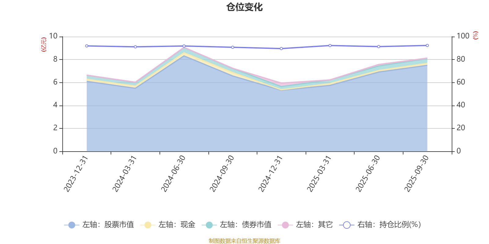 据定期报告数据统计,成立以来平均股票仓位为91.36%,同类平均为88.27%。2025年三季度末基金达到92.29%的最高仓位,2024年末最低,为89.6%。
