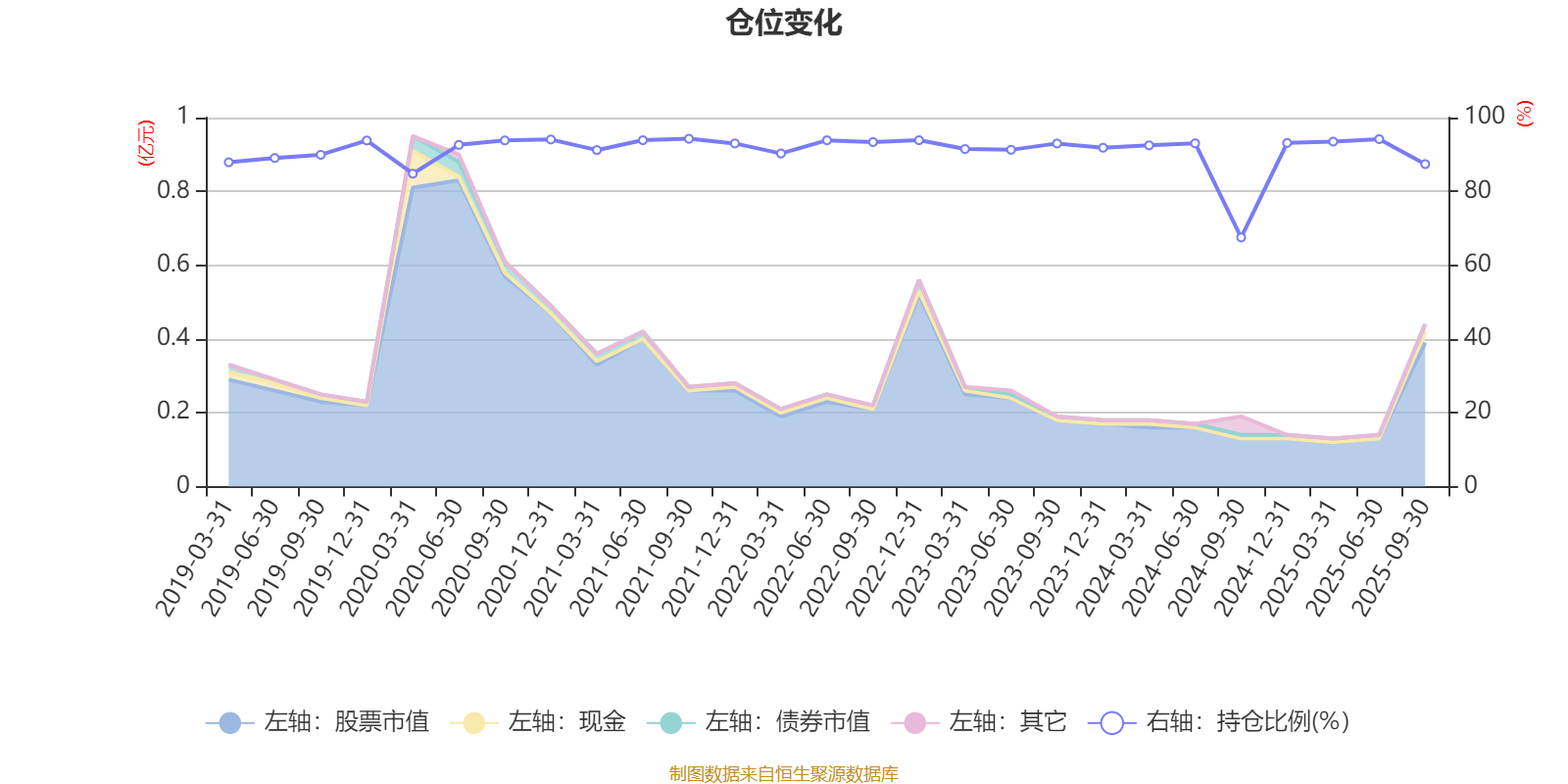 据定期报告数据统计,近三年平均股票仓位为90.22%,同类平均为88.29%。2021年三季度末基金达到94.26%的最高仓位,2024年三季度末最低,为67.52%。