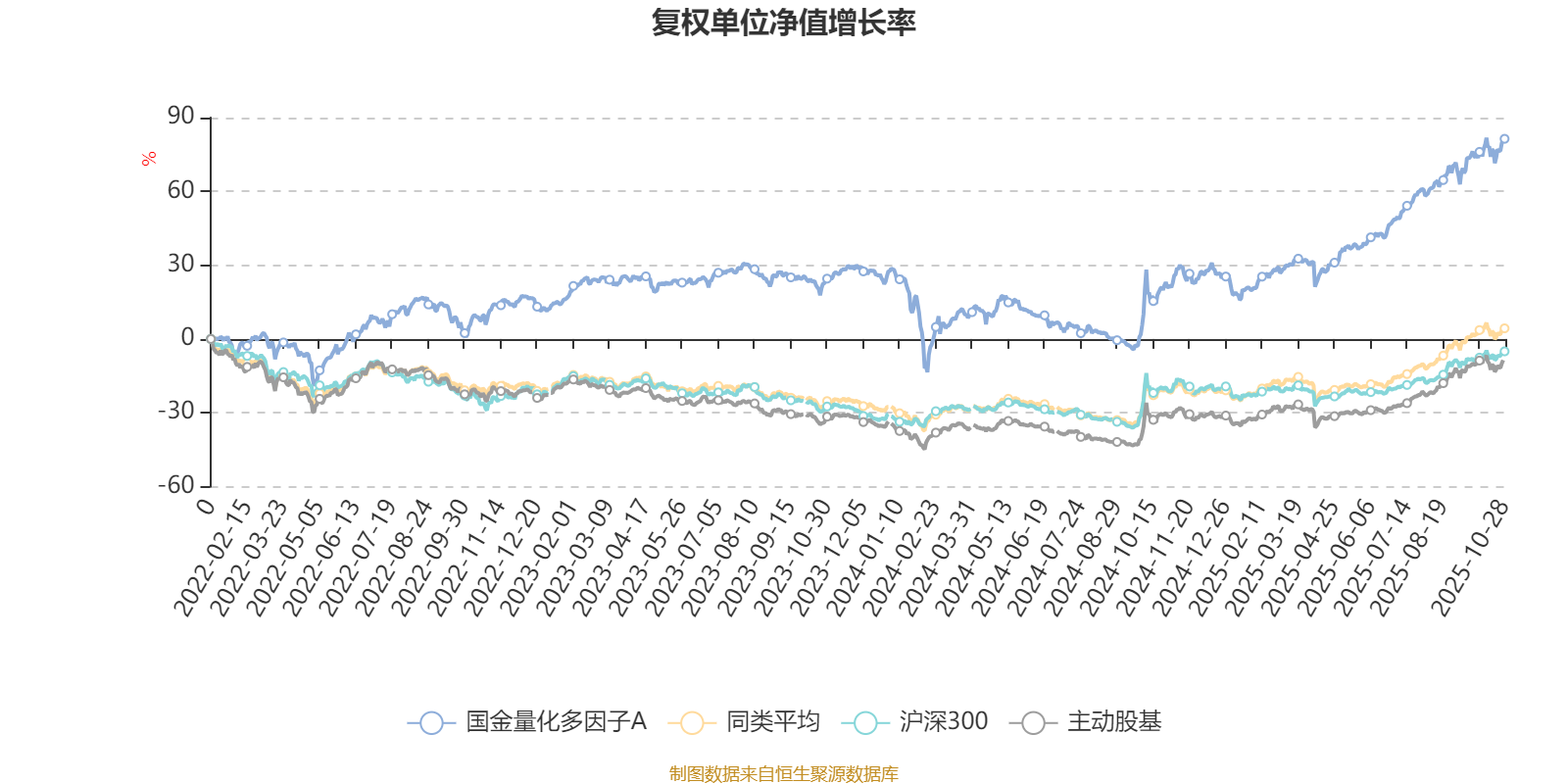 截至10月28日,国金量化多因子A近三个月复权单位净值增长率为12.85%,位于同类可比基金40/58;近半年复权单位净值增长率为39.15%,位于同类可比基金16/57;近一年复权单位净值增长率为47.35%,位于同类可比基金10/57;近三年复权单位净值增长率为71.36%,位于同类可比基金6/56。