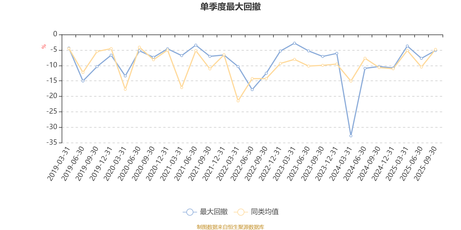 截至10月27日,基金近三年最大回撤为33.79%,同类可比基金排名30/56。单季度最大回撤出现在2024年一季度,为32.77%。