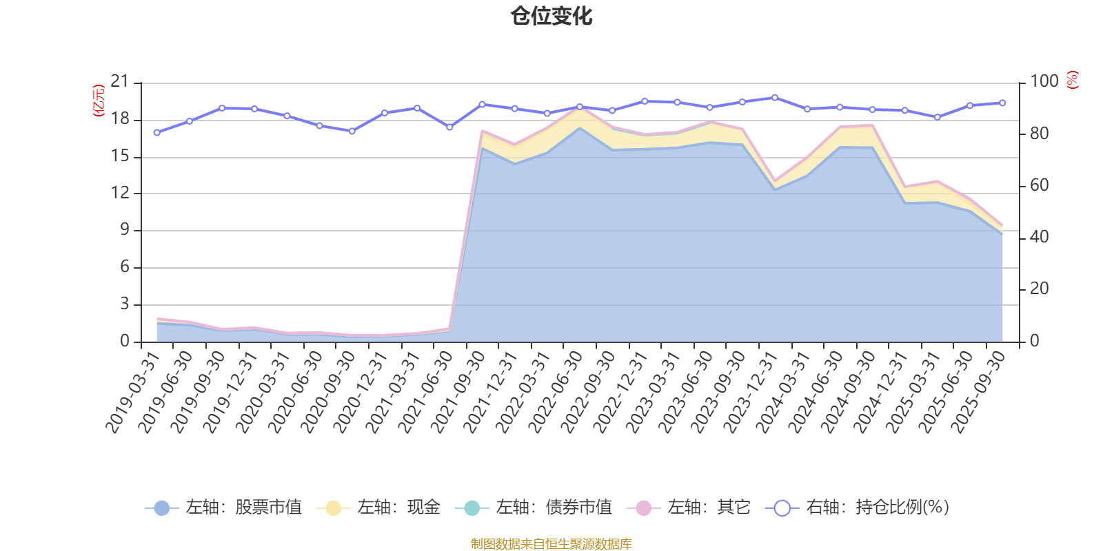 据定期报告数据统计,近三年平均股票仓位为91%,同类平均为72.35%。2023年末基金达到94.26%的最高仓位,2019年一季度末最低,为80.75%。