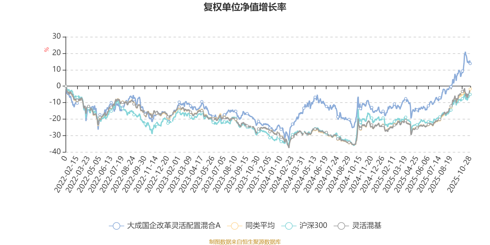 截至10月28日,大成国企改革灵活配置混合A近三个月复权单位净值增长率为15.85%,位于同类可比基金480/1287;近半年复权单位净值增长率为33.49%,位于同类可比基金408/1287;近一年复权单位净值增长率为27.27%,位于同类可比基金488/1287;近三年复权单位净值增长率为44.39%,位于同类可比基金191/1286。