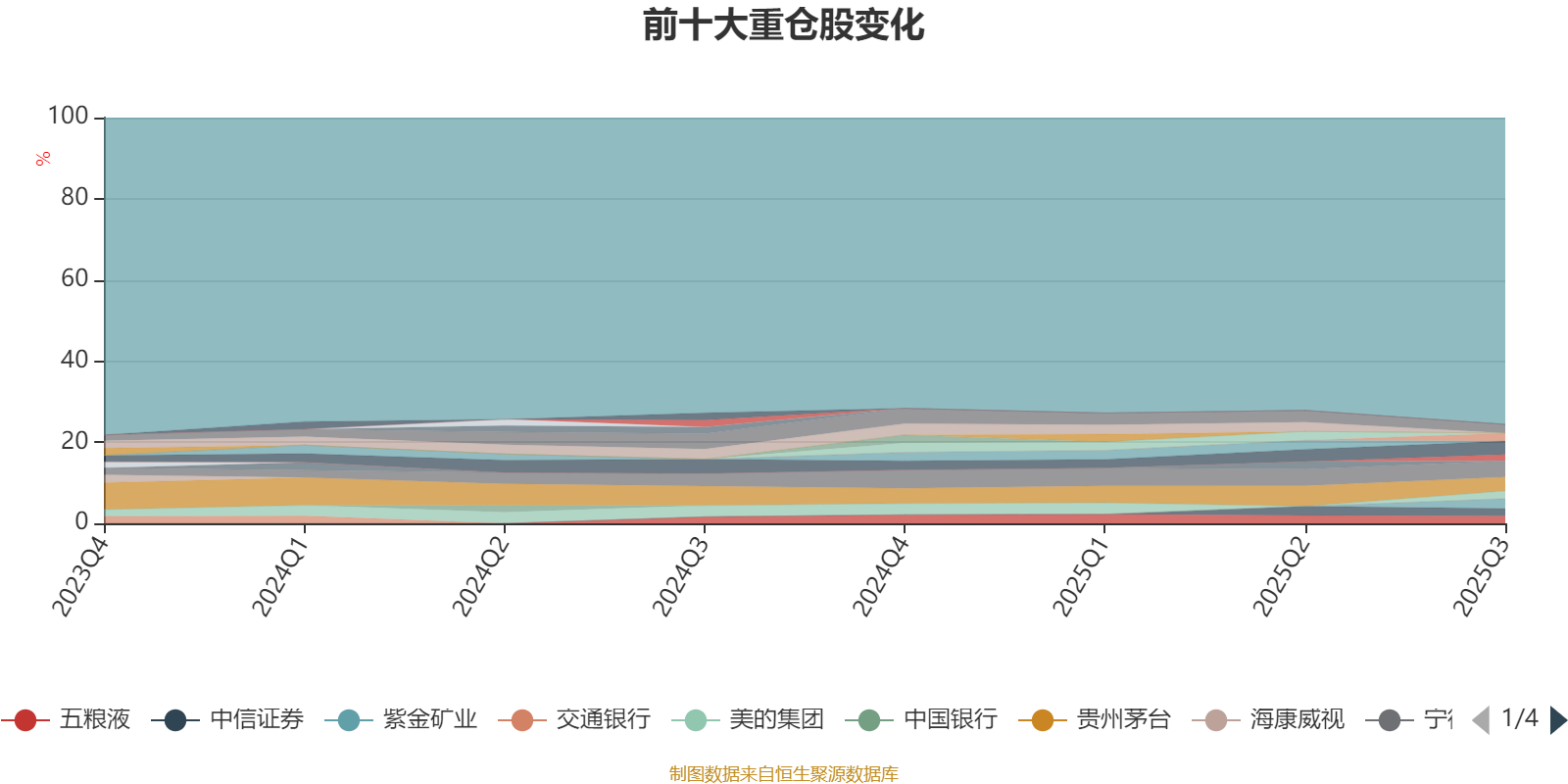截至2025年三季度末,基金十大重仓股分别是宁德时代、贵州茅台、招商银行、紫金矿业、中国平安、药明康德、美的集团、中信证券、五粮液、中兴通讯。