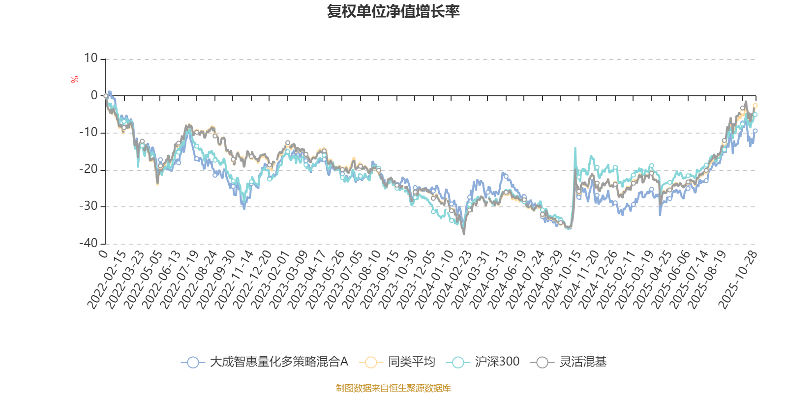 截至10月28日,大成智惠量化多策略混合A近三个月复权单位净值增长率为10.36%,位于同类可比基金692/1287;近半年复权单位净值增长率为25.95%,位于同类可比基金589/1287;近一年复权单位净值增长率为20.71%,位于同类可比基金662/1287;近三年复权单位净值增长率为29.71%,位于同类可比基金376/1286。