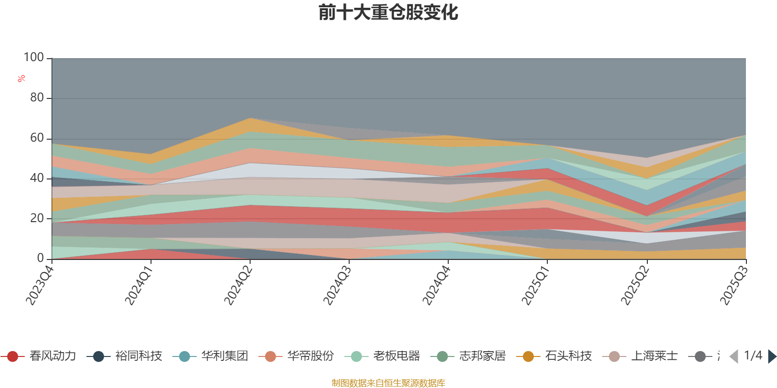 该基金持股集中度较高。截至2025年三季度末,基金十大重仓股分别是海信视像、赛轮轮胎、牧原股份、百亚股份、上美股份、长城汽车、石头科技、中策橡胶、海尔智家、中宠股份。