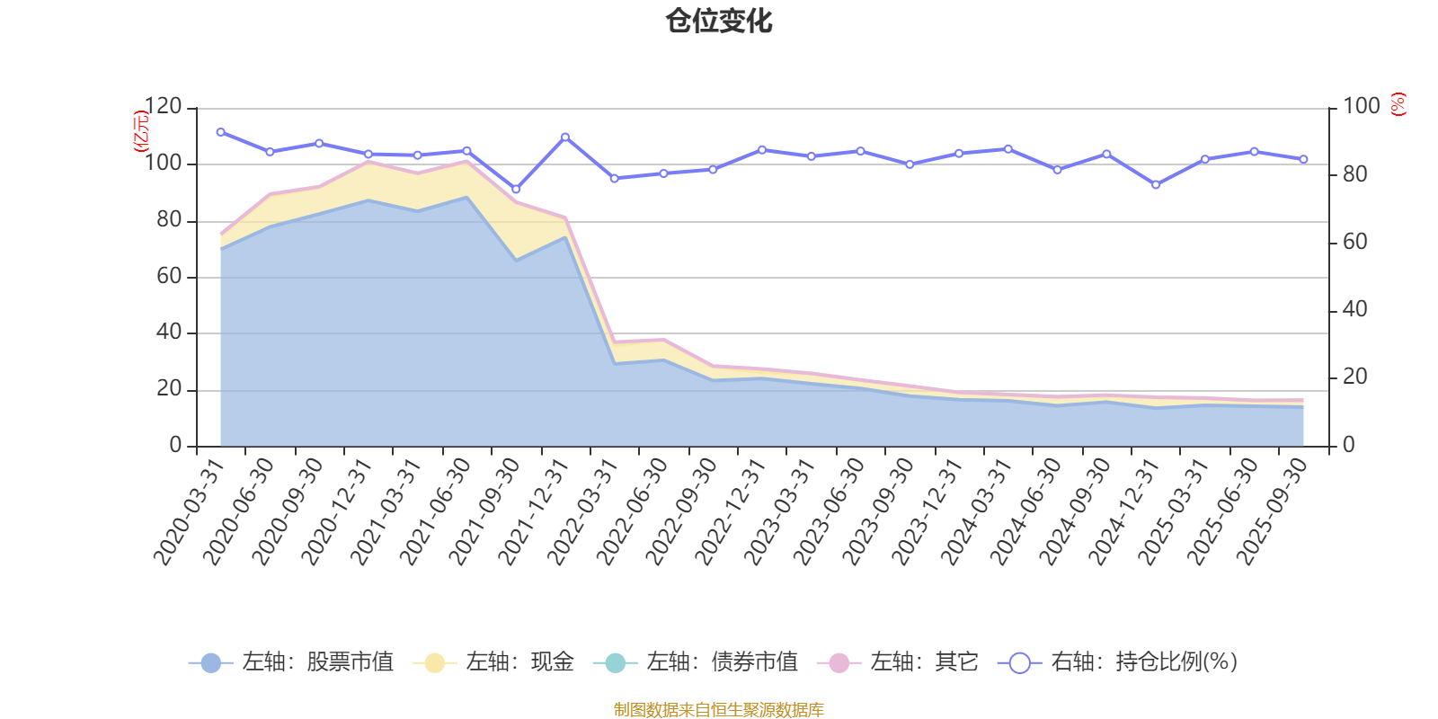 据定期报告数据统计,近三年平均股票仓位为85.02%,同类平均为85.66%。2020年一季度末基金达到92.84%的最高仓位,2021年三季度末最低,为75.98%。