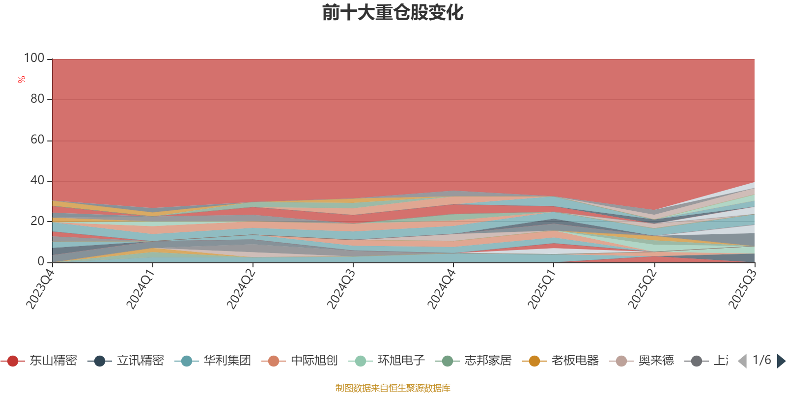 截至2025年三季度末,基金十大重仓股分别是华海清科、恒瑞医药、立讯精密、恒玄科技、工业富联、环旭电子、水晶光电、芯联集成、晶合集成、拓荆科技。