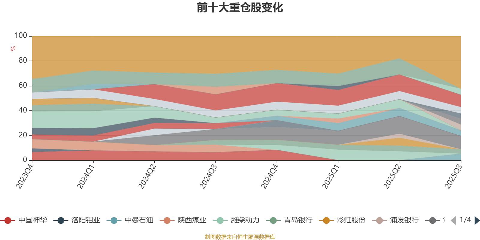 该基金持股集中度较高。截至2025年三季度末,基金十大重仓股分别是渝农商行、齐鲁银行、中曼石油、招商轮船、中国巨石、英科医疗、甬金股份、恩华药业、中国石油、青岛银行。