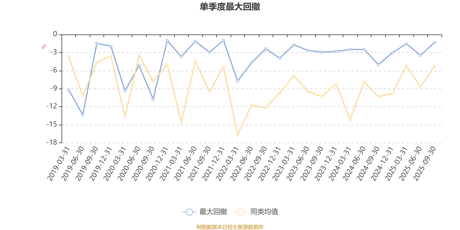 截至10月27日,基金近三年最大回撤为5.56%,同类可比基金排名88/1274。单季度最大回撤出现在2019年二季度,为13.37%。