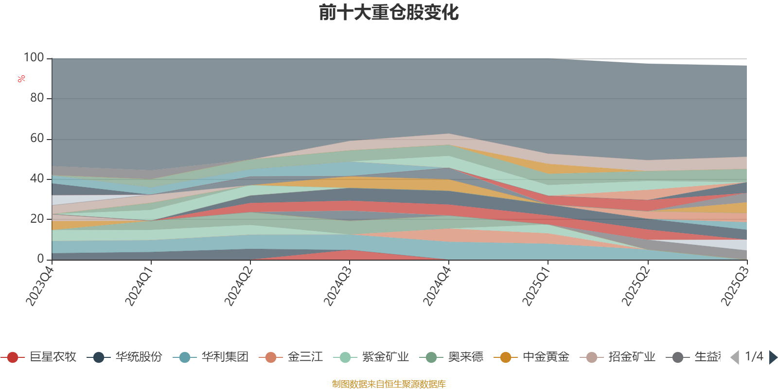 截至2025年三季度末,基金十大重仓股分别是三环集团、中国宏桥、牧原股份、万华化学、华鲁恒升、TCL科技、工业富联、生益科技、中国铝业、东岳集团。