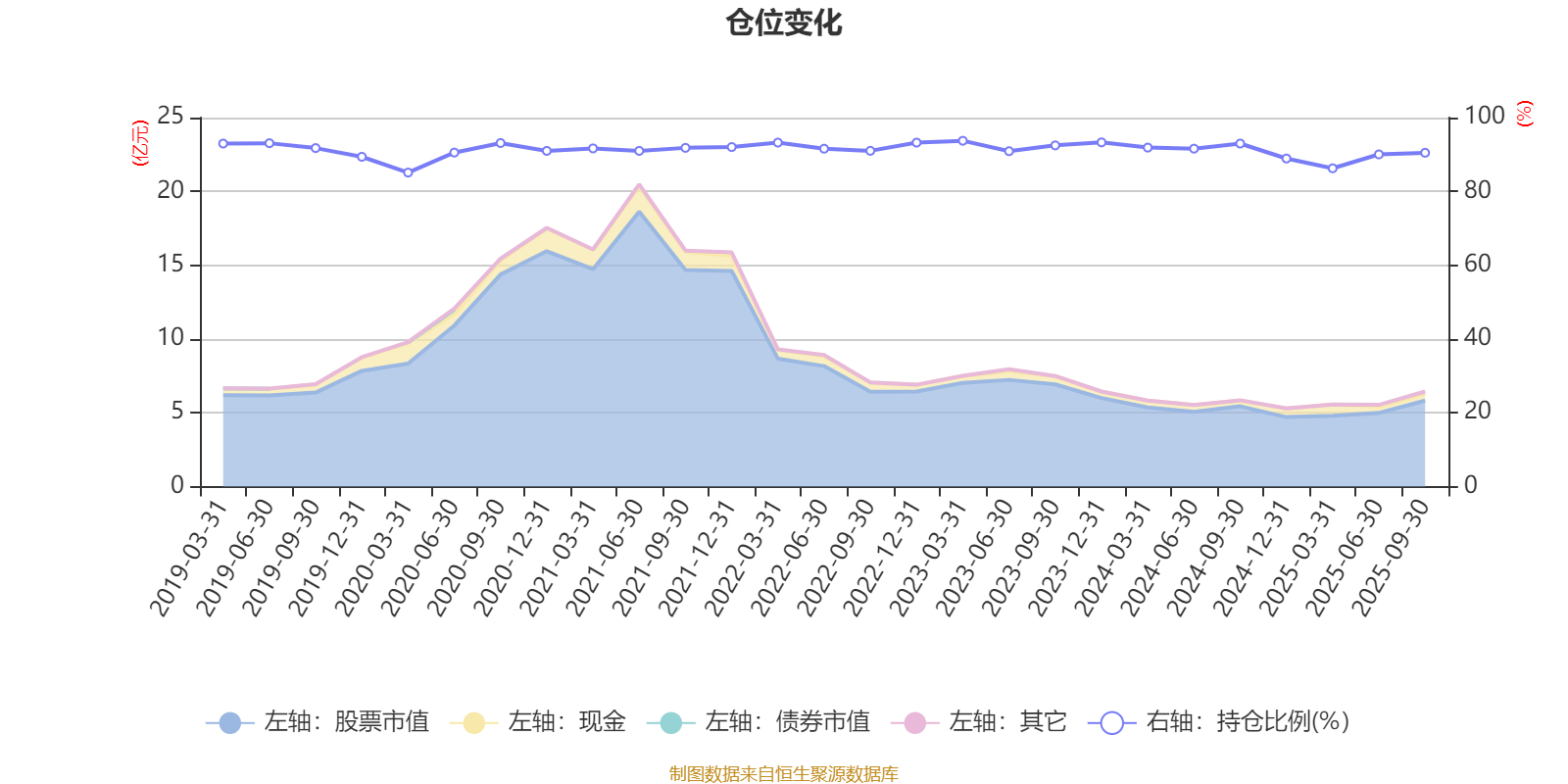据定期报告数据统计,近三年平均股票仓位为91.31%,同类平均为88.27%。2023年一季度末基金达到93.72%的最高仓位,2020年一季度末最低,为85.1%。