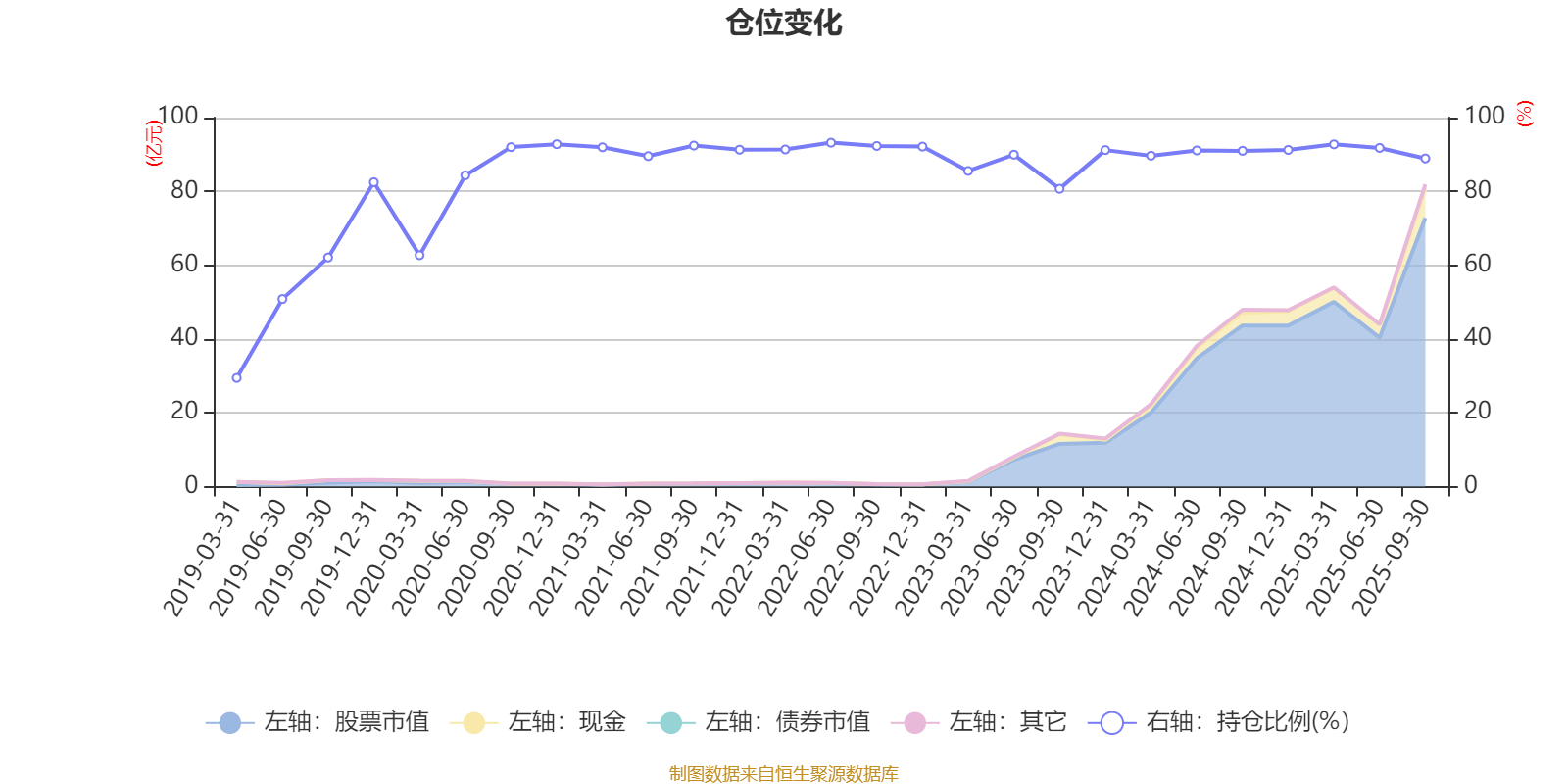据定期报告数据统计,近三年平均股票仓位为89.67%,同类平均为72.35%。2022年上半年末基金达到93.2%的最高仓位,2019年一季度末最低,为29.44%。