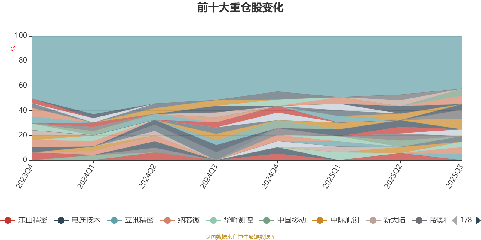 截至2025年三季度末,基金十大重仓股分别是华海清科、晶合集成、拓荆科技、纳芯微、芯联集成、燕东微、立讯精密、南芯科技、环旭电子、华峰测控。