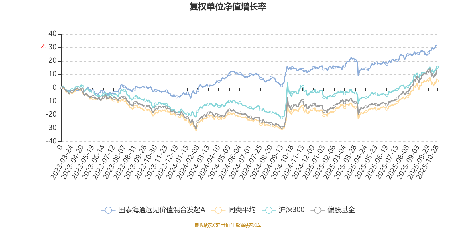 截至10月27日,国泰海通远见价值混合发起A近三个月复权单位净值增长率为5.96%,位于同类可比基金538/689;近半年复权单位净值增长率为15.13%,位于同类可比基金560/688;近一年复权单位净值增长率为15.22%,位于同类可比基金493/653。