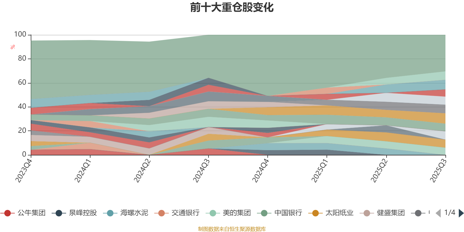 截至2025年三季度末,基金十大重仓股分别是中国铝业、宁波银行、齐鲁银行、神火股份、云铝股份、杭州银行、太阳纸业、常熟银行、美的集团、永新股份。