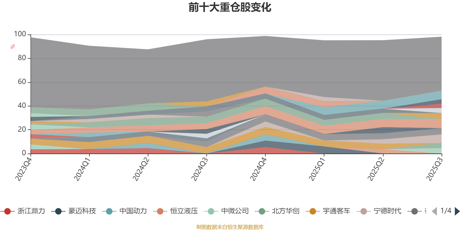 截至2025年三季度末,基金十大重仓股分别是徐工机械、三一重工、宁德时代、福耀玻璃、中芯国际、中微公司、北方华创、拓普集团、拓荆科技、工业富联。