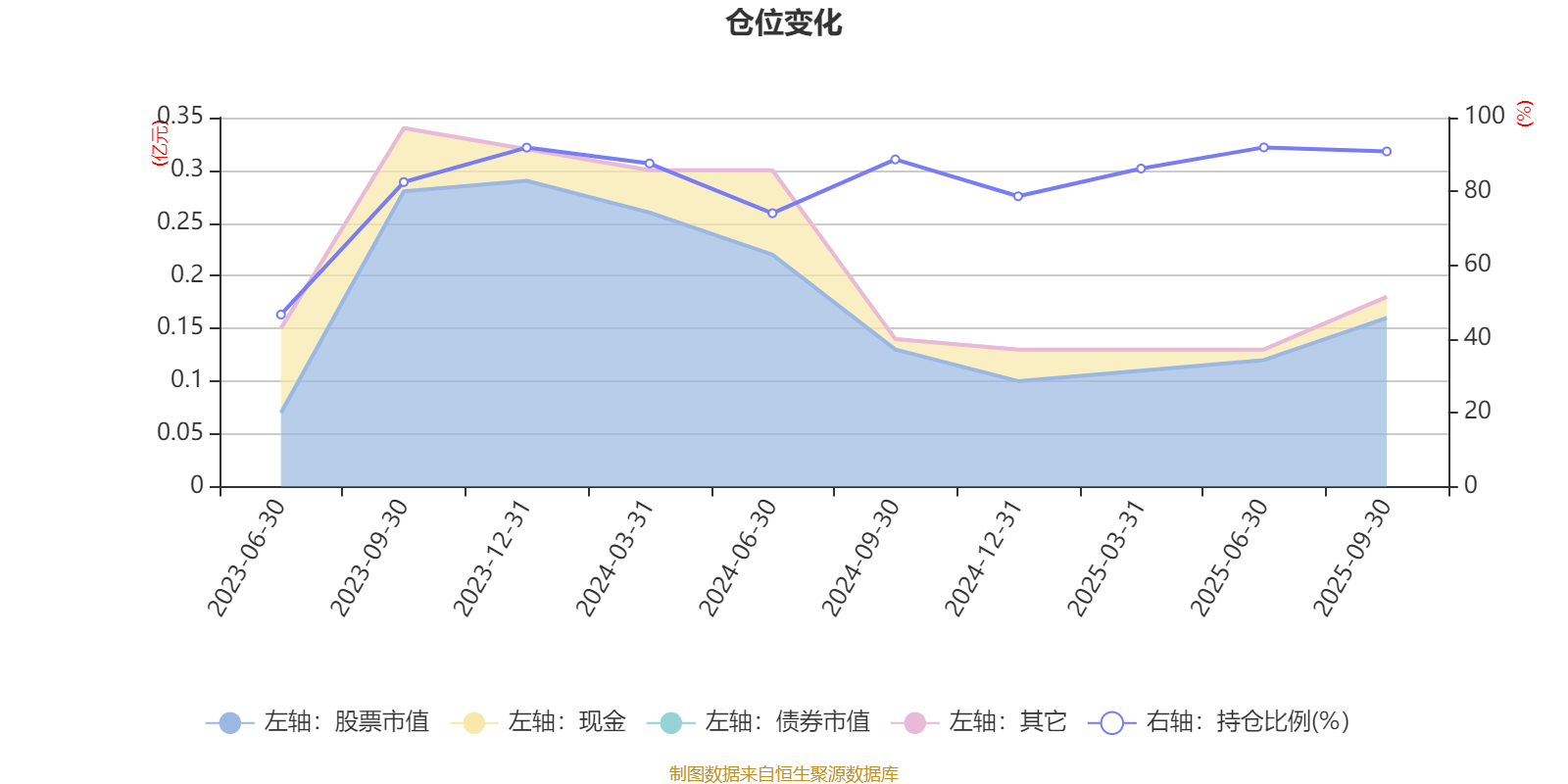 据定期报告数据统计,成立以来平均股票仓位为81.9%,同类平均为87.09%。2025年上半年末基金达到91.93%的最高仓位,2023年上半年末最低,为46.62%。