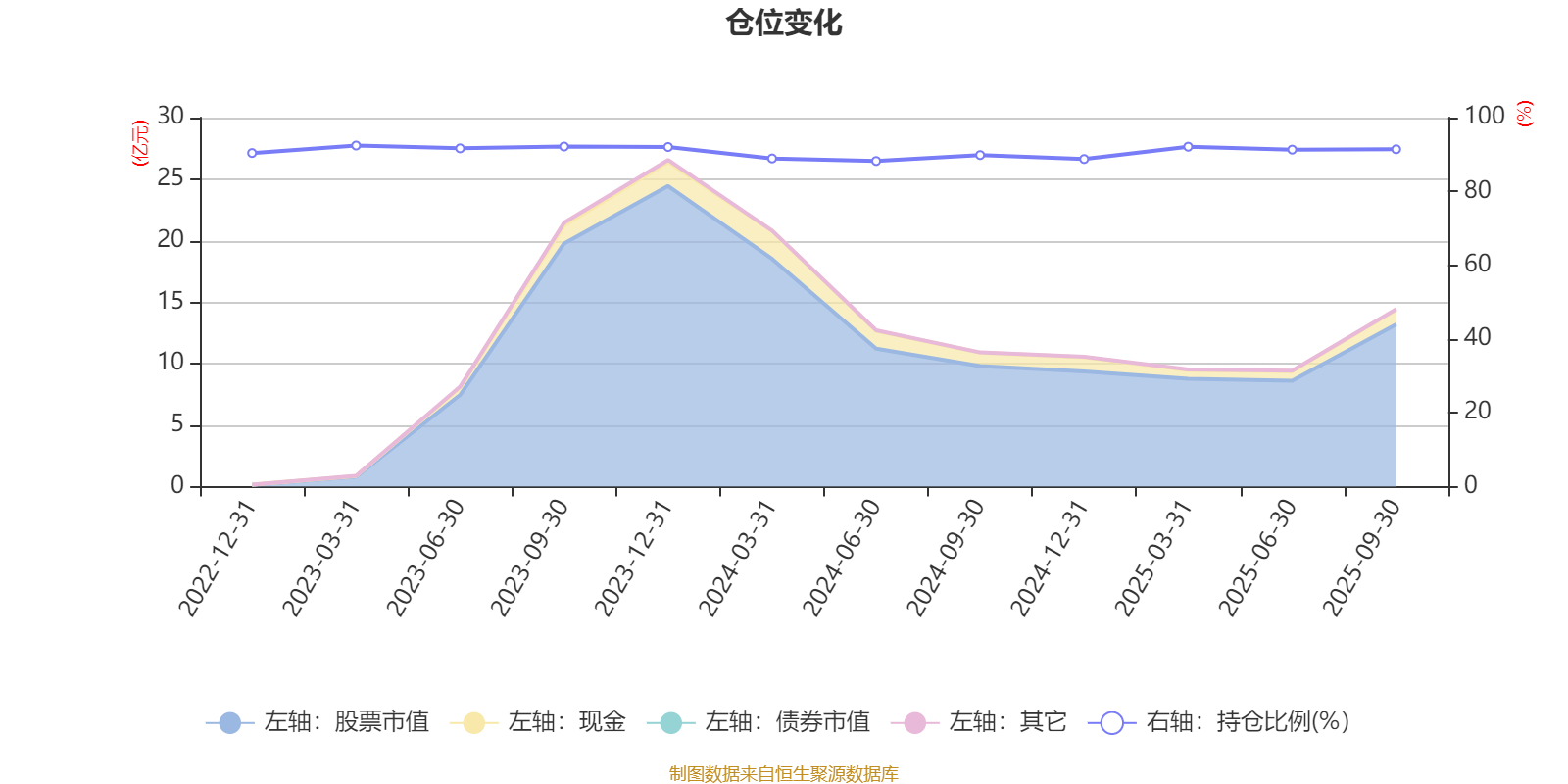 据定期报告数据统计,近三年平均股票仓位为90.78%,同类平均为85.66%。2023年一季度末基金达到92.43%的最高仓位,2024年上半年末最低,为88.23%。